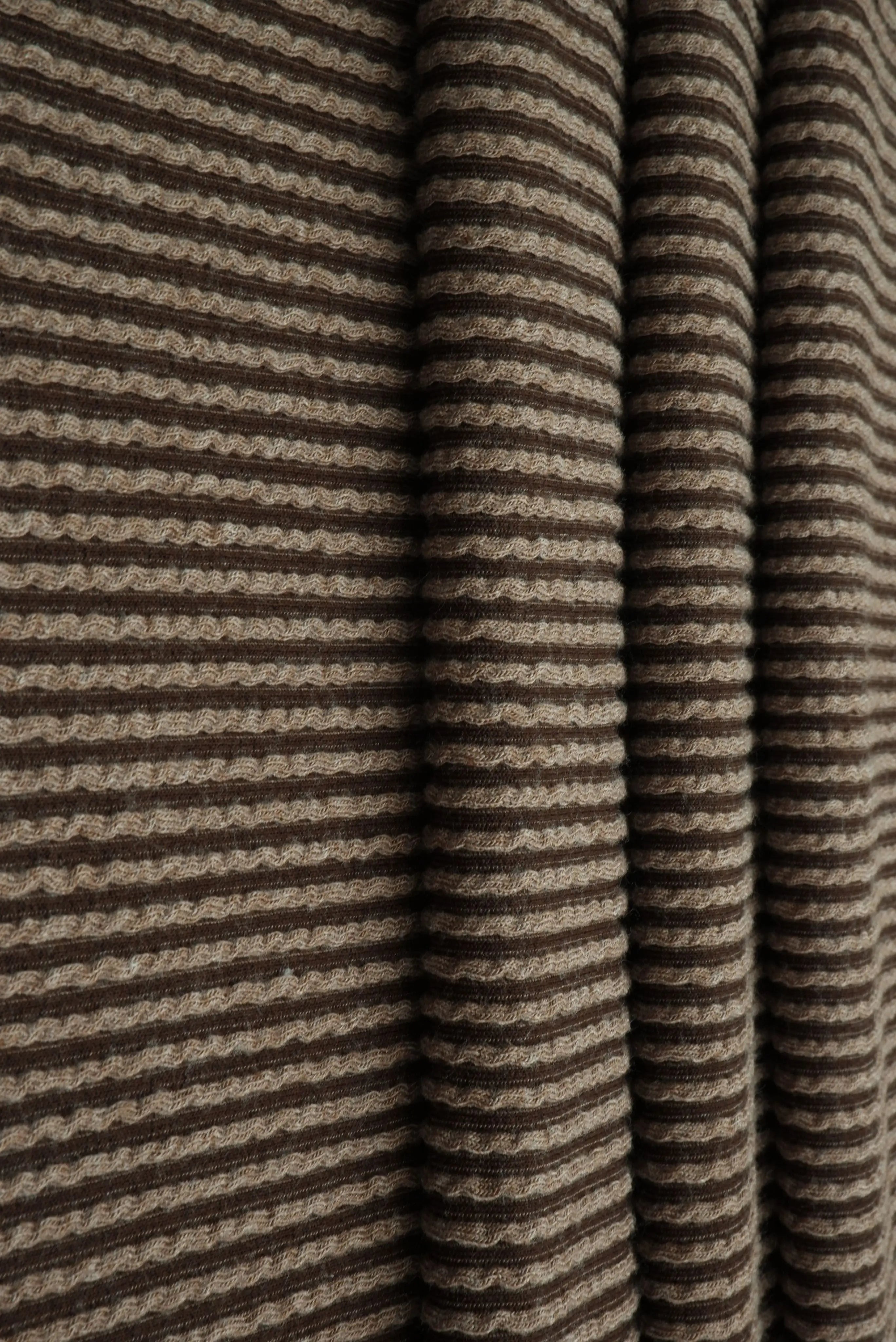 Add a touch of luxury to your creations with this double knit jacquard fabric featuring a rich ribbed texture. Crafted from 80% Polyester, 15% Rayon, and 5% Spandex, this 52" wide medium-weight fabric offers both structure and flexibility. With a soft hand feel and excellent stretch and recovery, it’s perfect for sweaters, tops, dresses, and loungewear. Durable and wrinkle-resistant, this fabric is ideal for stylish, comfortable pieces you can enjoy all year round.